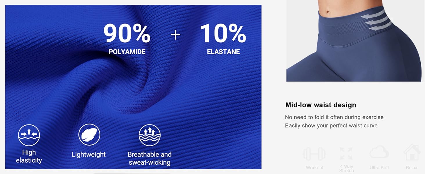【Mid-Low Waist Design】: Perfectly fits the abdomen, shows off your waist curve and helps you maintain proper posture during intense workout